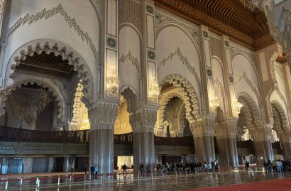 Ja, tatsächlich die riesige, moderne Stadt macht ihren Namen alle Ehre. Die Häuser sind weiß. Eigentlich wollte ich sie aussparen, aber Ahmed meinte, es wäre gut sie auf dem Weg nach Rabat zu besuchen. Vor allem wegen der berühmten Moschee Hassan II, die einzige in Marokko, die wir als Nicht-Muslime betreten dürfen. Es ist tatsächlich ein sehr imposantes Gebäude, dass erst vor ca. 10 Jahren fertig gestellt wurde. 80.000 Gläubige können hier zur selben Zeit beten. Und die Moslems benötigen Platz für ihr Gebets-Yoga. Zur Moschee führt eine lange Promenade am Atlantik entlang. Mir scheint baden im Ozean ist hier nicht möglich, denn es gibt an der Küste entlang überall Pools oder Strände von Mauern umgeben. Der Boulevard sieht mehr aus wie eine Befestigungsanlage. Vielleicht liegt es auch daran, dass die Marokkaner nicht schwimmen können. Dieses Fernomen ist mir in Indien auch schon begegnet.